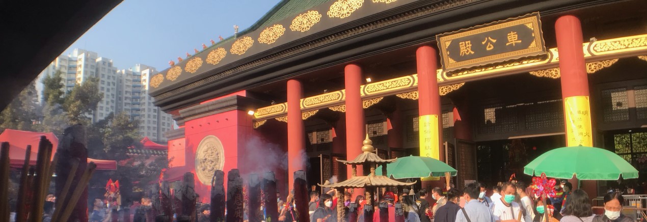 新春期間,沙田地標之一的車公廟未受疫情影響,香火鼎盛 ; 特別是年初二「車公誕」、初三「赤口」更是信眾如潮,盛況不減當年。
