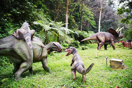 山谷內出現的不同恐龍模型,帶你回到蠻荒時代。