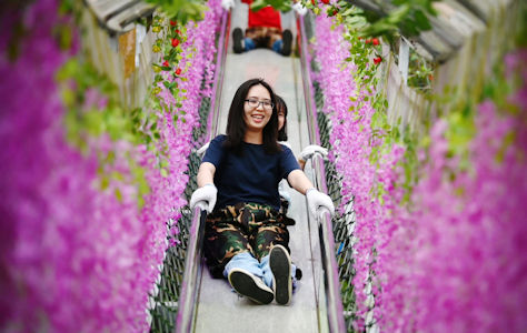 在花海中的滑梯滑下來,賞心樂事。