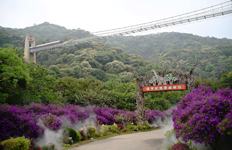 遊客可以登上二龍山吊橋欣賞蒼翠山嶺。
