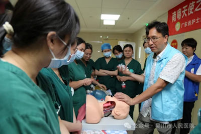 “南粵天使之粵港急救技能進基層免費教育(專案)活動”,是由廣東省護士協會、香港衛生護理專業人員協會、香港急症科護理學院聯合主辦,在吳川市人民醫院舉行。“活動”目的是加強當地基層醫護人員提高基層急救水準和能力,共有120名學員參加。廣東省護士協會監事長賴清、香港衛生護理專業人員協會領隊陳樹權、廣東省護士協會急診護士分會副會長張樹增,勞漢玉、吳川市衛健局黨組成員李區、吳川醫院黨委書記李權、院長李東、副院長楊日興出席了活動。